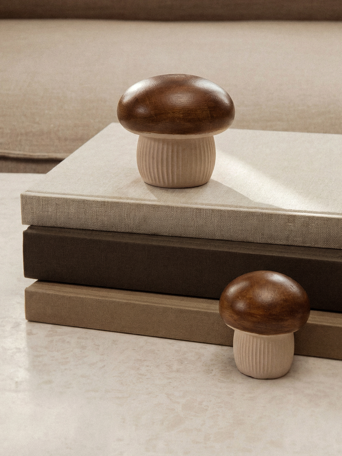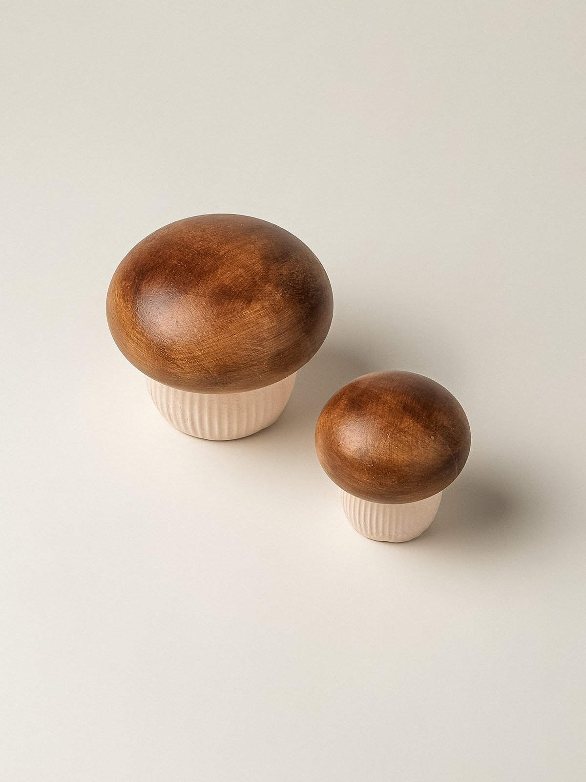 Seramik malzemeden üretilen Mush ikili obje, mantar formundan ilham alan tasarımı ve doğal görünümlü yüzeyiyle dekorasyona sıcak bir dokunuş katar. Birlikte ya da ayrı kullanıldığında bulunduğu alana karakterli ve zarif bir görünüm sağlar.