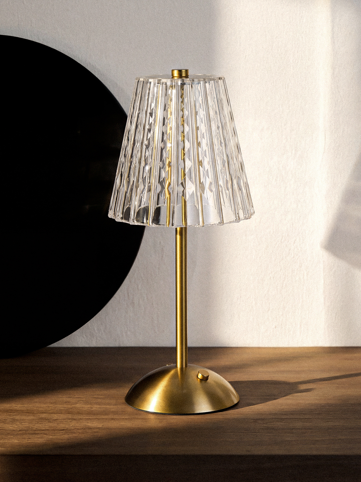 Nora Led Şarjlı Şeffaf Masa Lambası, kristal görünümlü şeffaf başlığı ve metal gövdesiyle bulunduğu ortama modern ve zarif bir atmosfer kazandırır.
