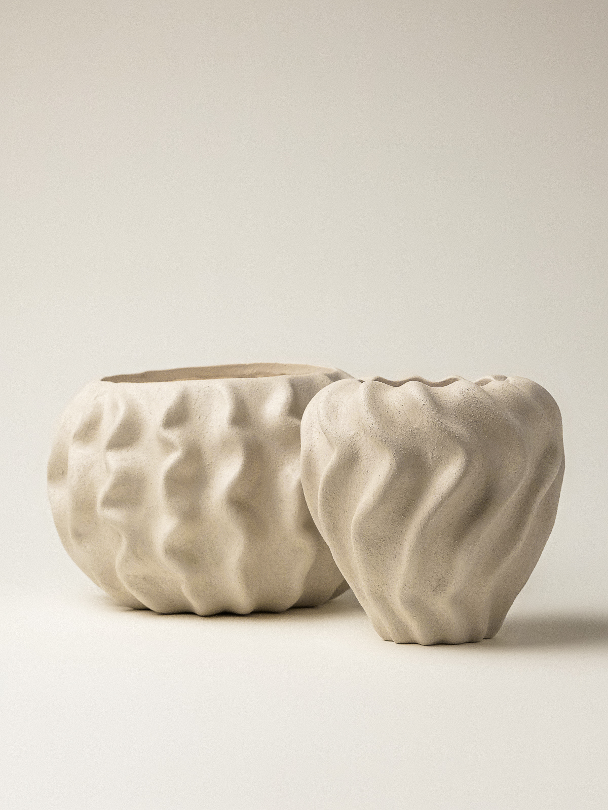İki adet vazodan oluşan bu set, isterseniz tek başına kullanılabilir, isterseniz birlikte sergileyerek daha etkileyici bir dekoratif alan yaratabilirsiniz. Çiçekler veya bitkilerle dolu olarak kullanabileceğiniz gibi, sade bir dekoratif öge olarak da tercih edebilirsiniz.