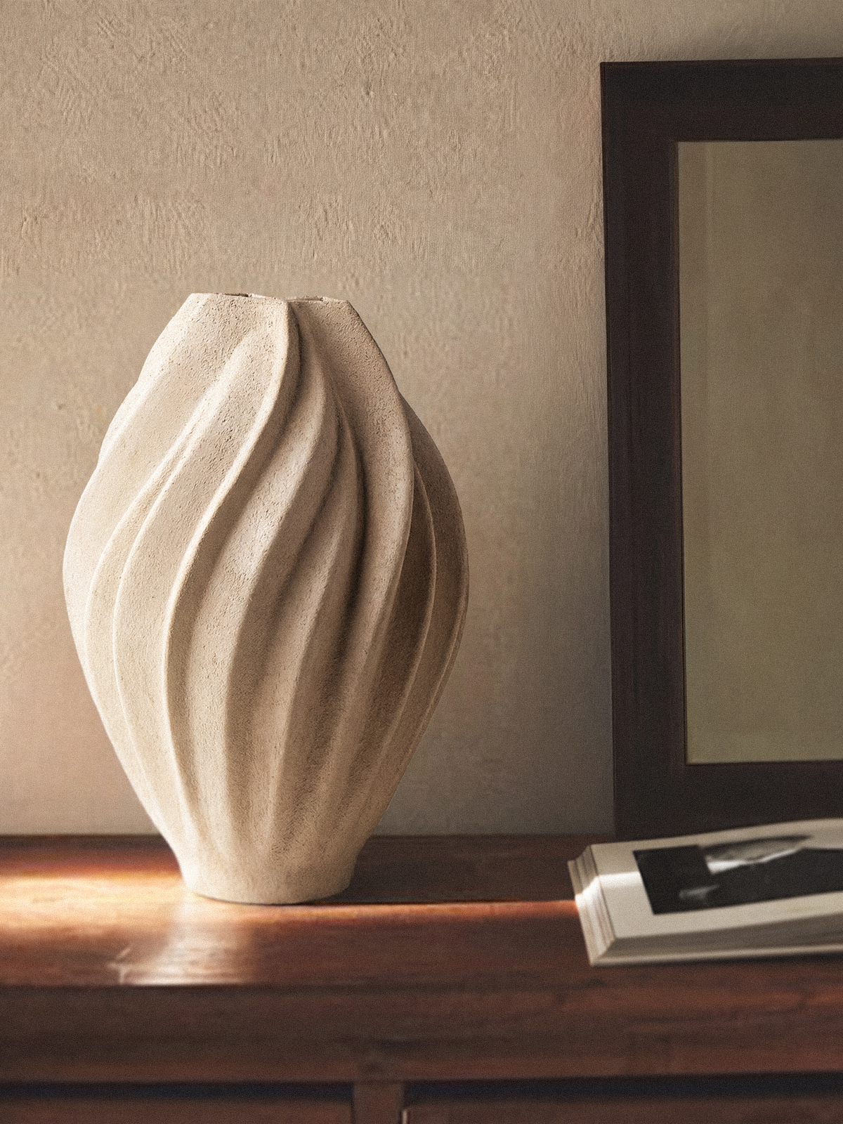 Seramik malzemeden üretilen Vesper vazo, doğal dokulu yüzeyi ve akışkan formuyla sade ve zarif bir görünüm sunar. Minimal tasarımı sayesinde farklı dekorasyon stilleriyle kolayca uyum sağlar.